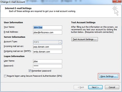 - Select "Advanced" tab. Change outgoing (SMTP) server to 587
